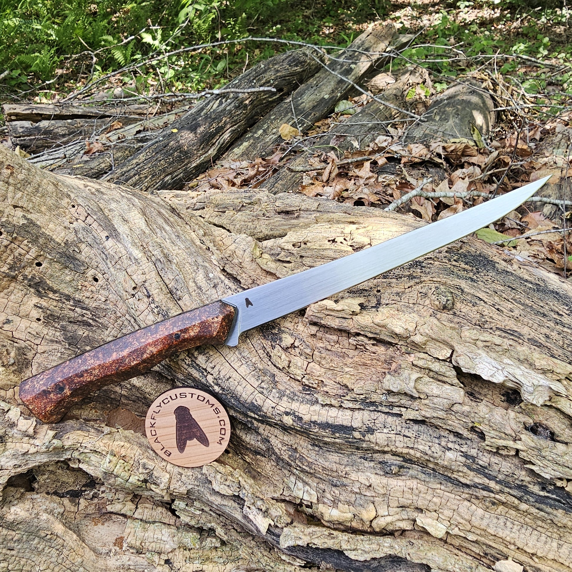 The fillet knife traces its origins to European fishing villages, where craftsmen developed long, thin, and flexible blades to efficiently process fish for market and preservation. Over time, the design spread globally and evolved with stainless steel and ergonomic handles, becoming essential in both commercial fisheries and home kitchens. Can also be used as a boning knife.