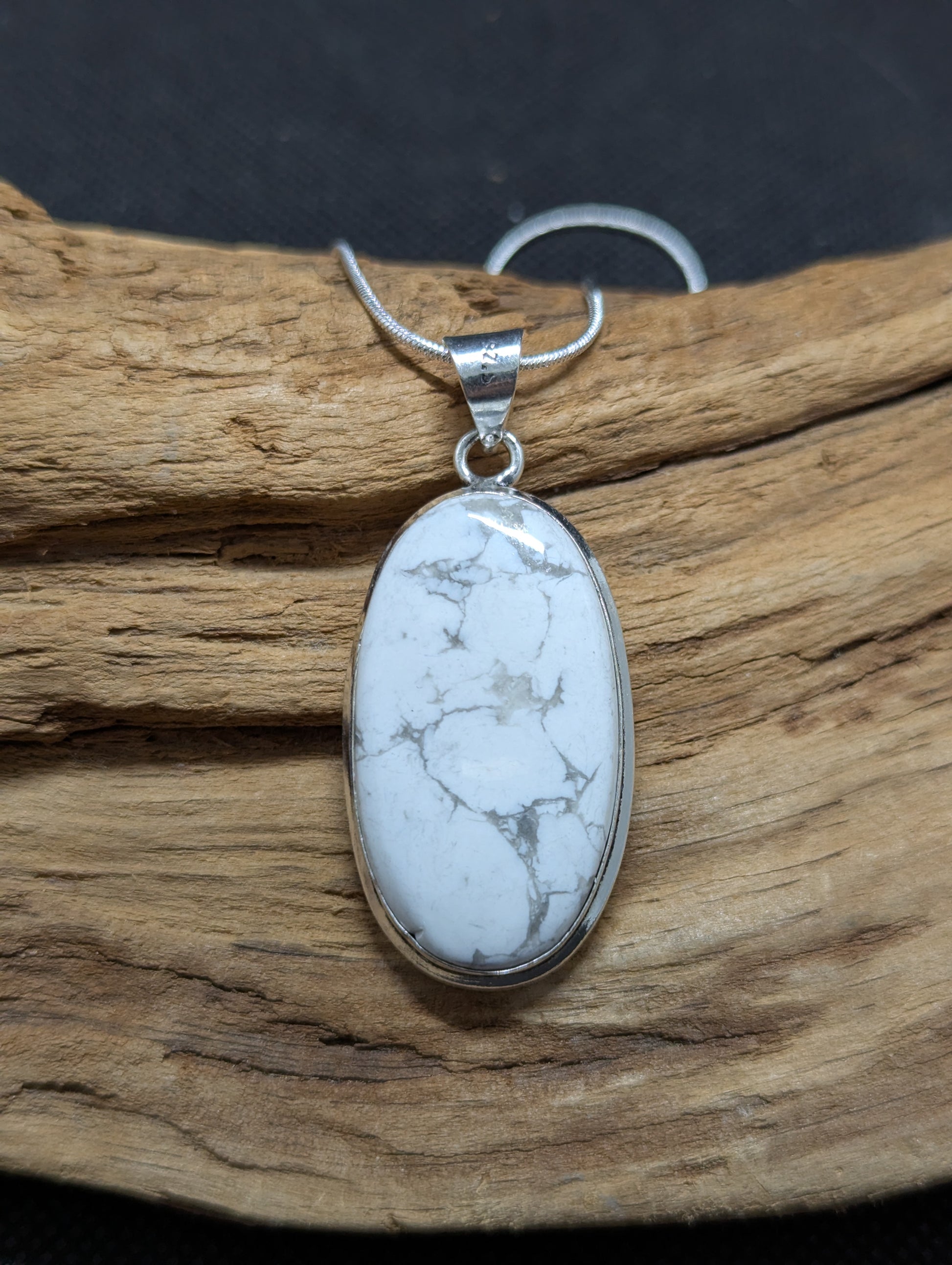 Howlite hand cut and polished. Set in .925 Silver.