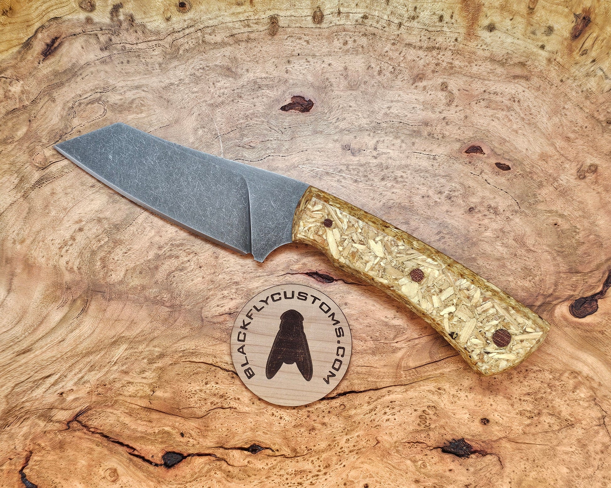 *Stabilizing wood is the process of infusing soft or porous wood with resin under vacuum and pressure to make it more durable, moisture-resistant, and suitable for knife handles or other fine work.