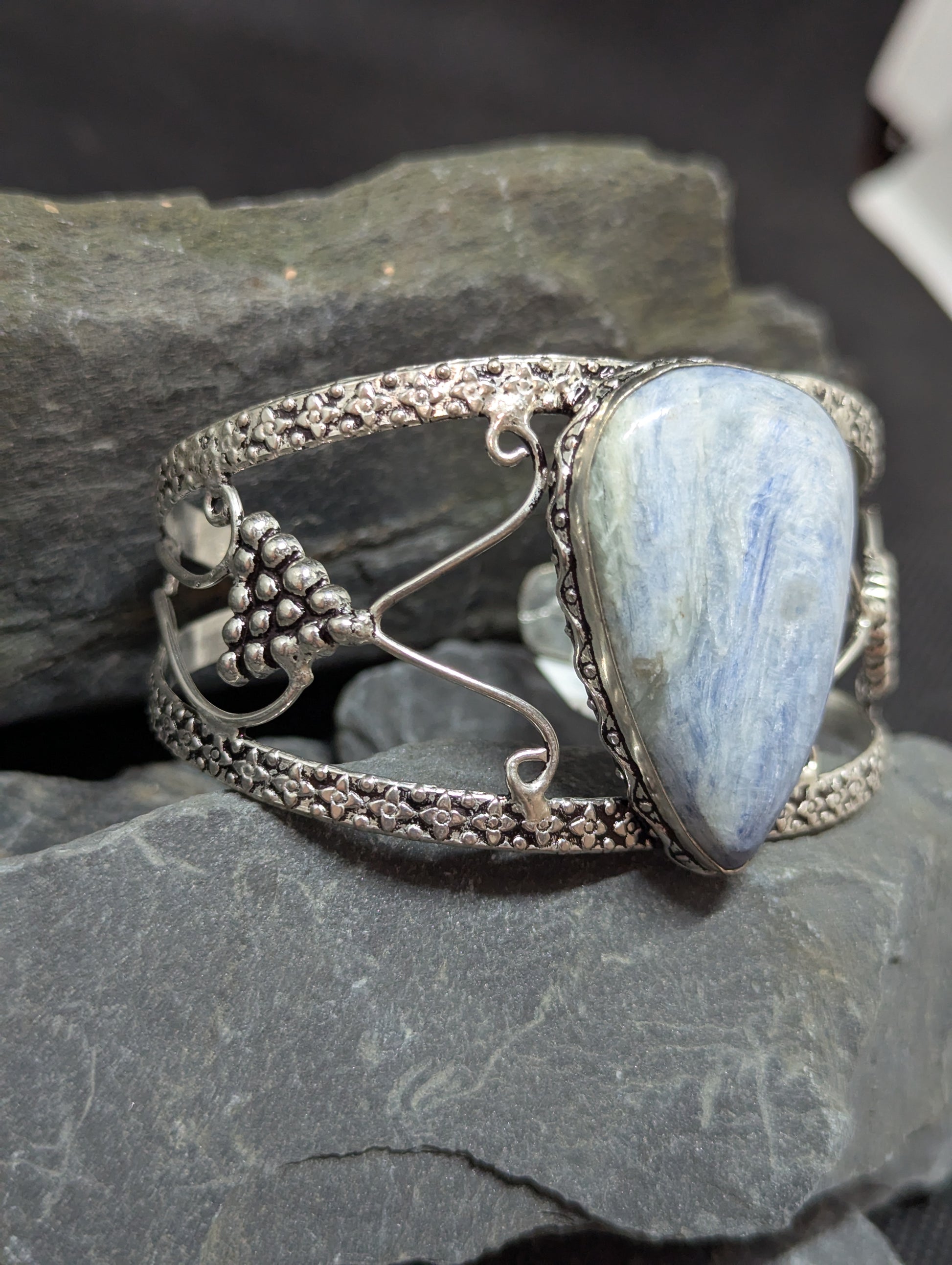 Kyanite hand cut and polished. Set in .925 Silver.