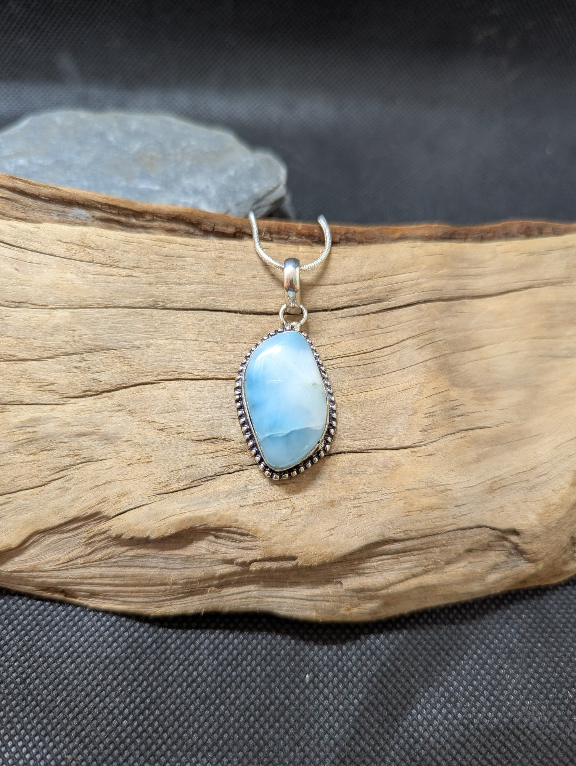 Larimar hand cut and polished. Set in .925 Silver.