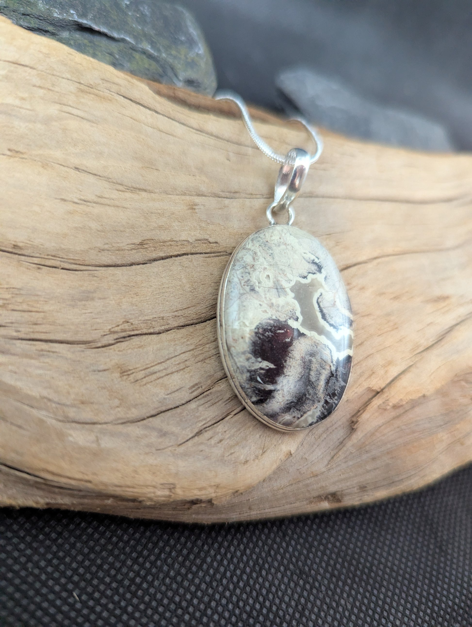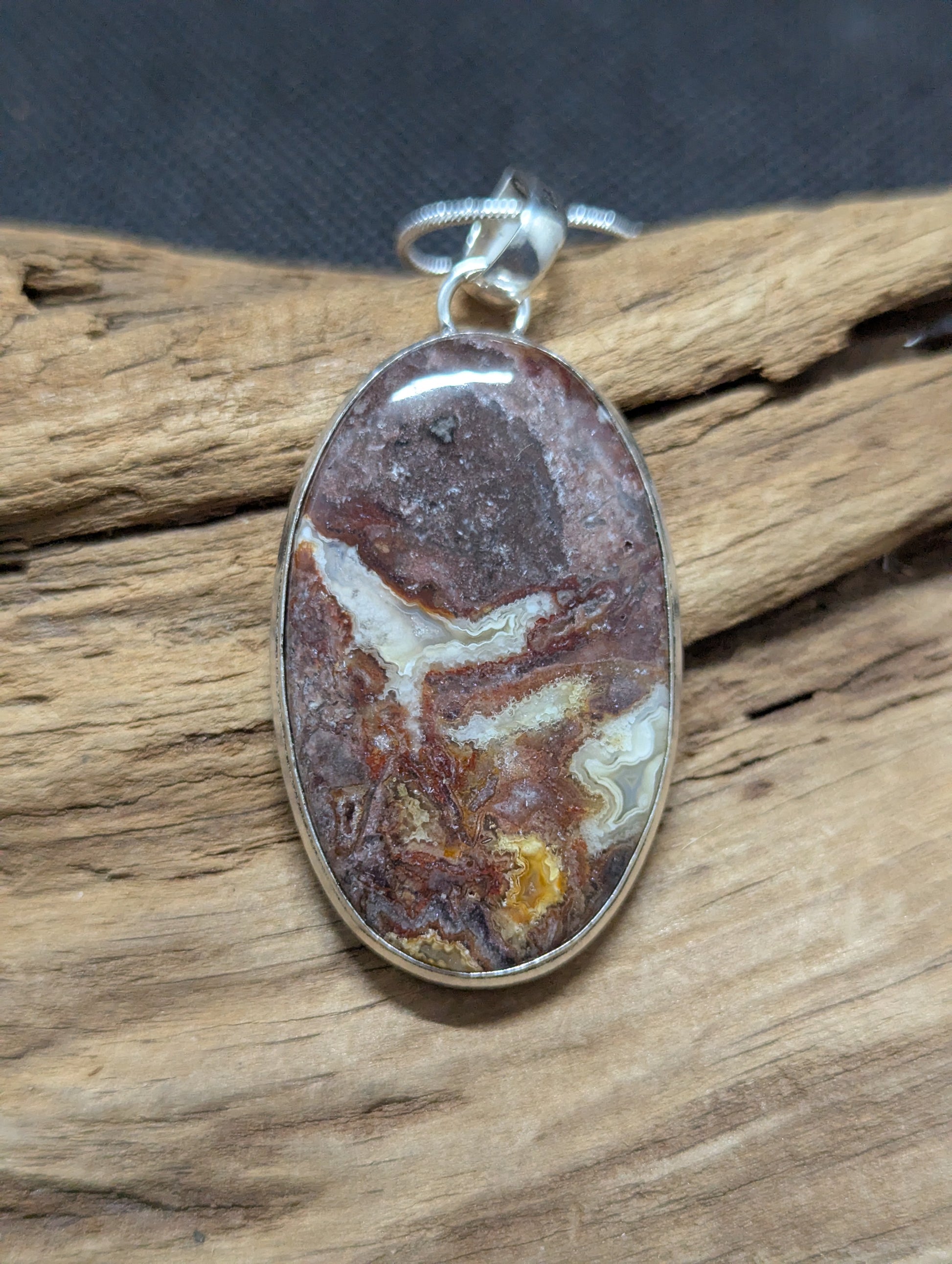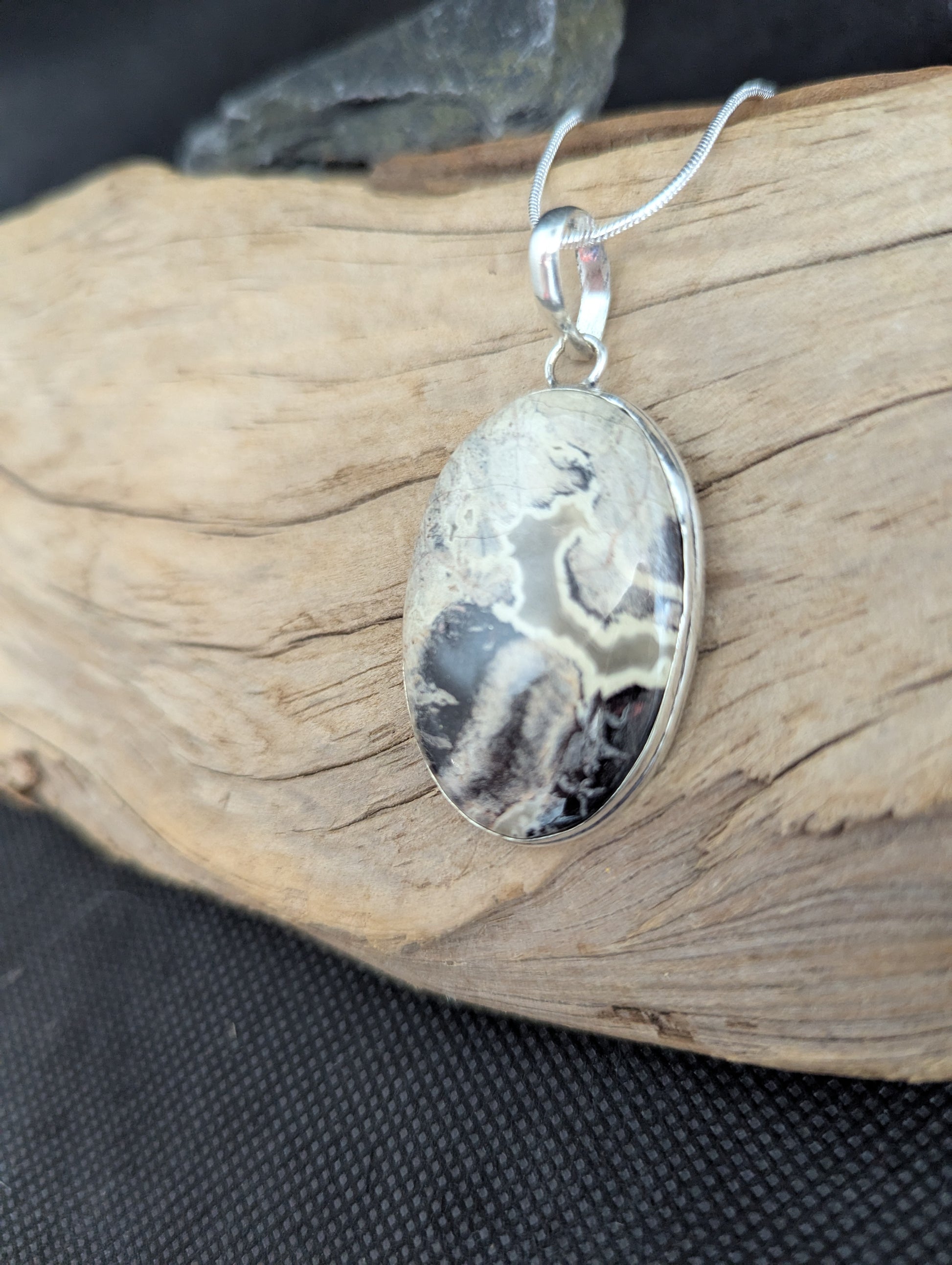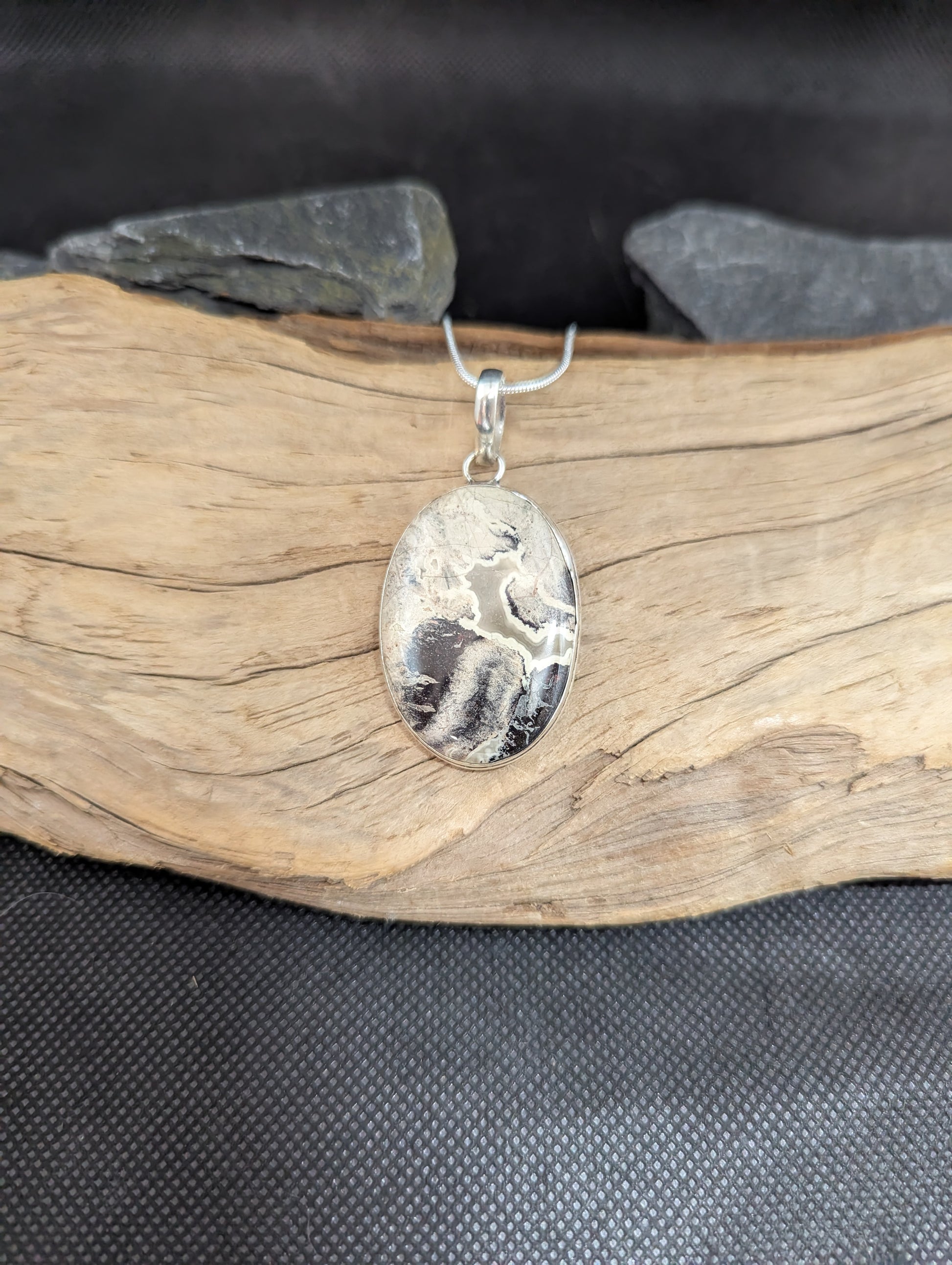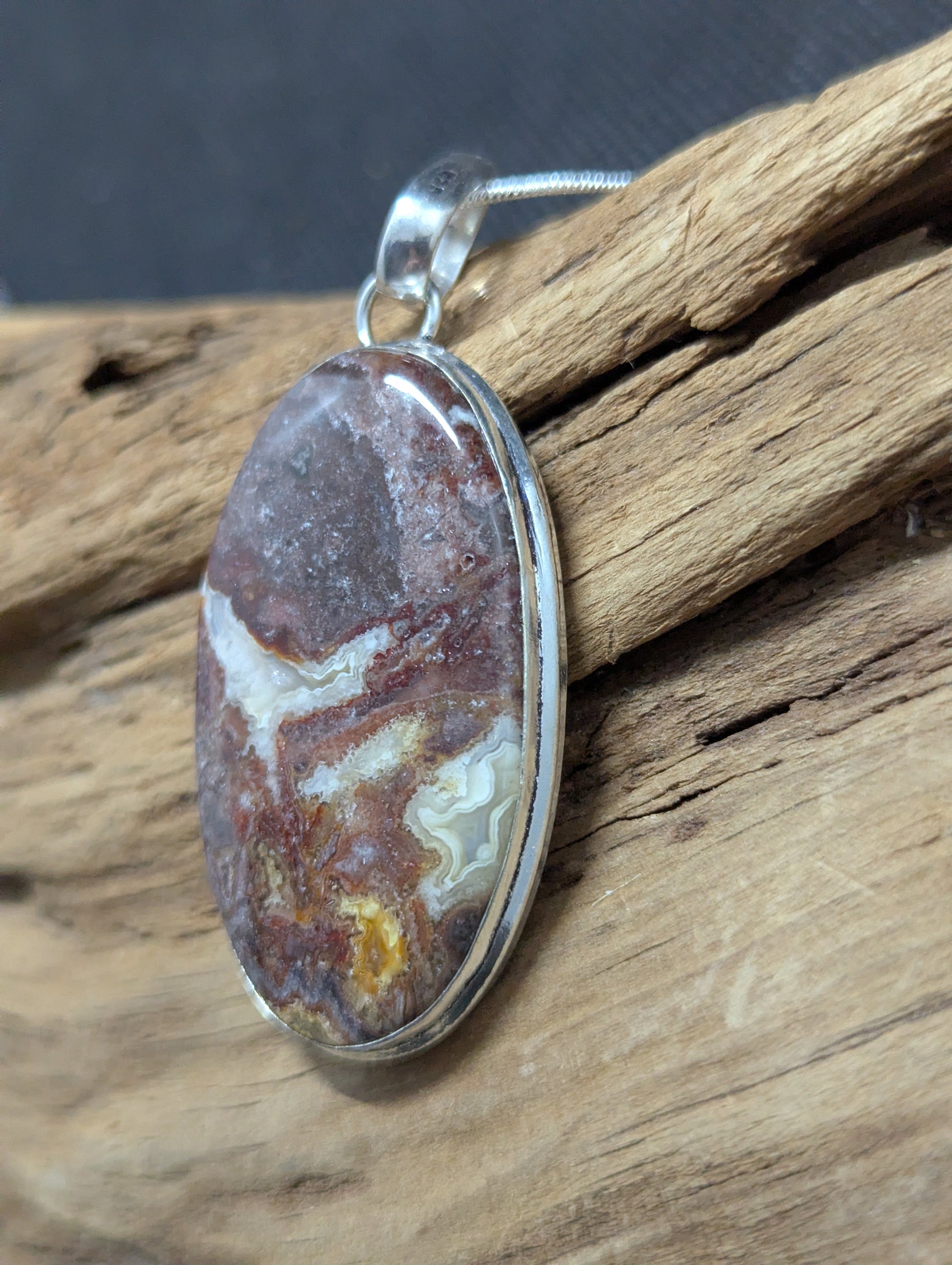 Mexican Laguna Lace hand cut and polished. Set in .925 Silver.