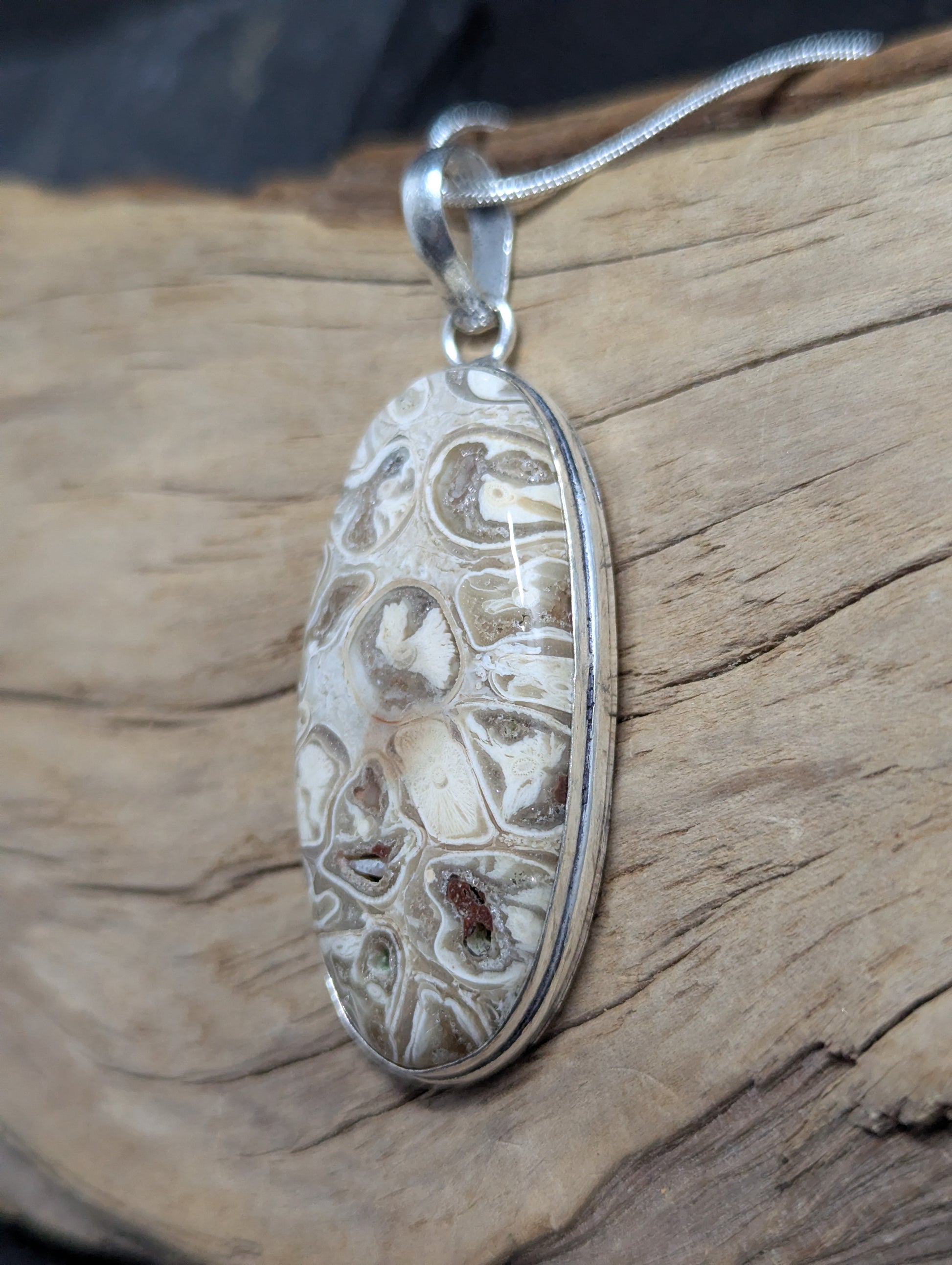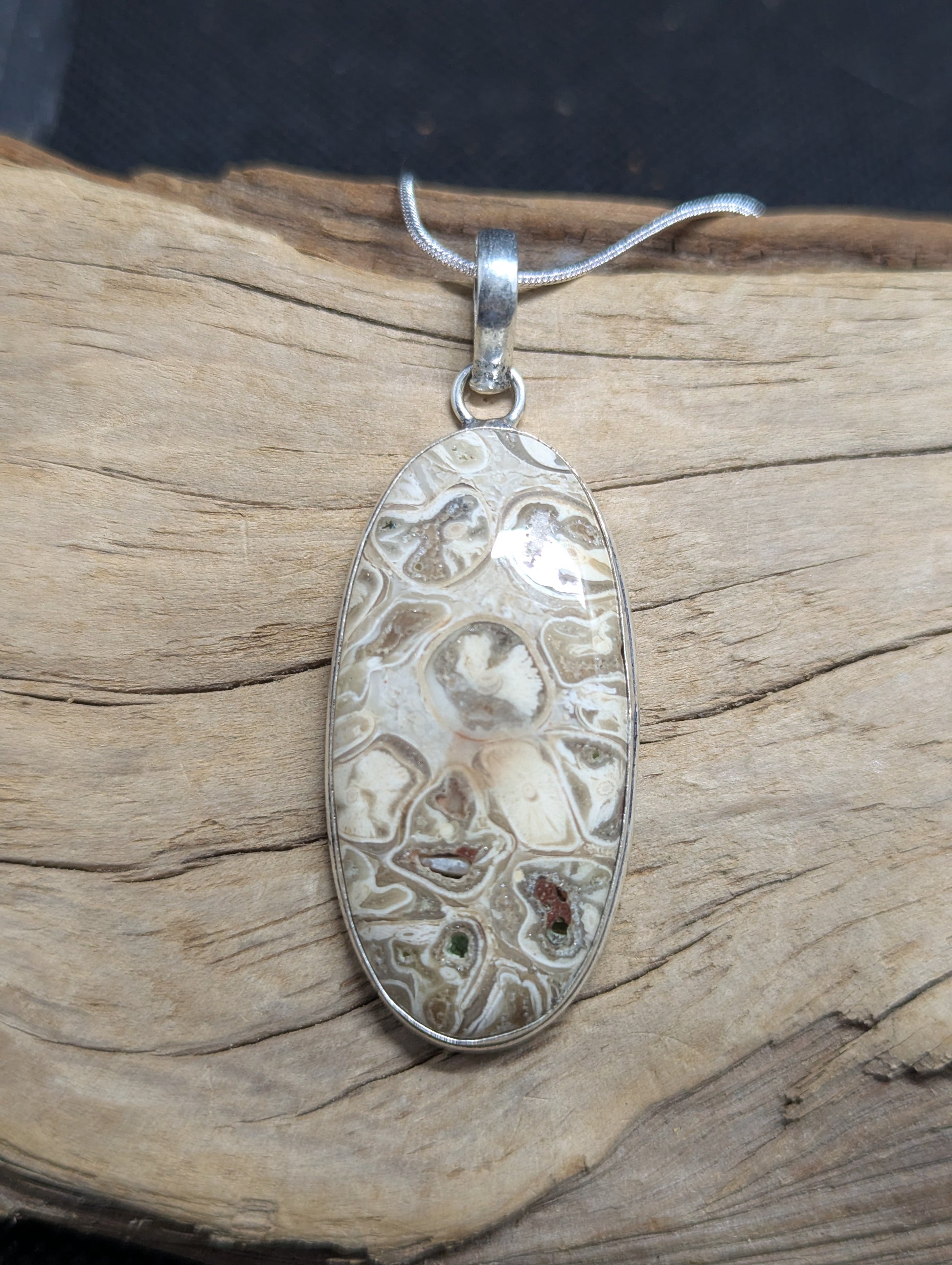 Mexican Laguna Lace hand cut and polished. Set in .925 Silver.