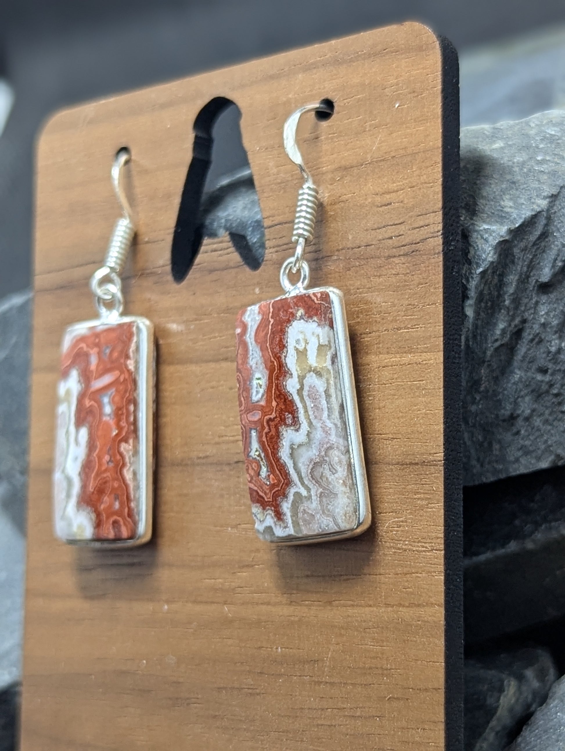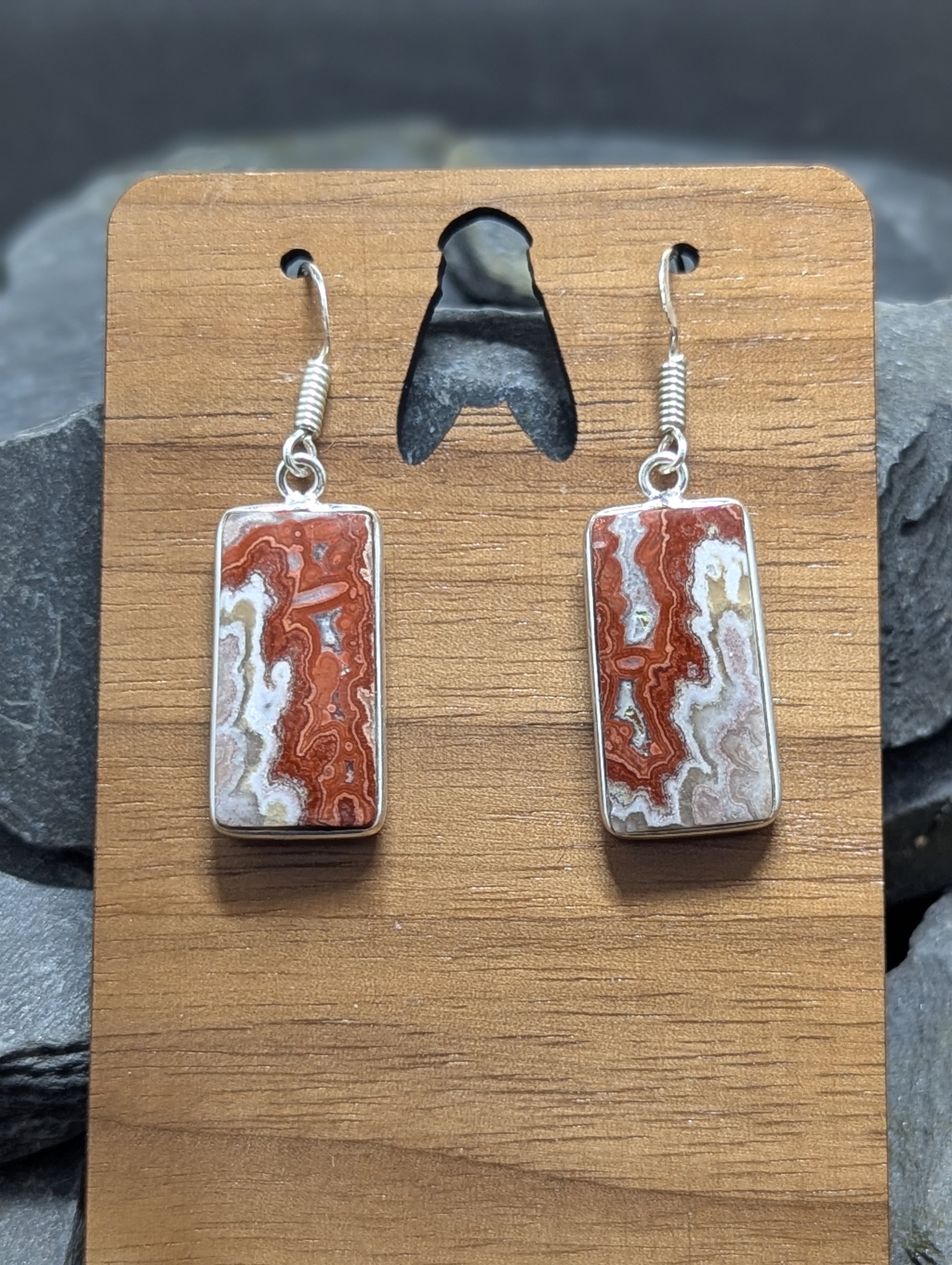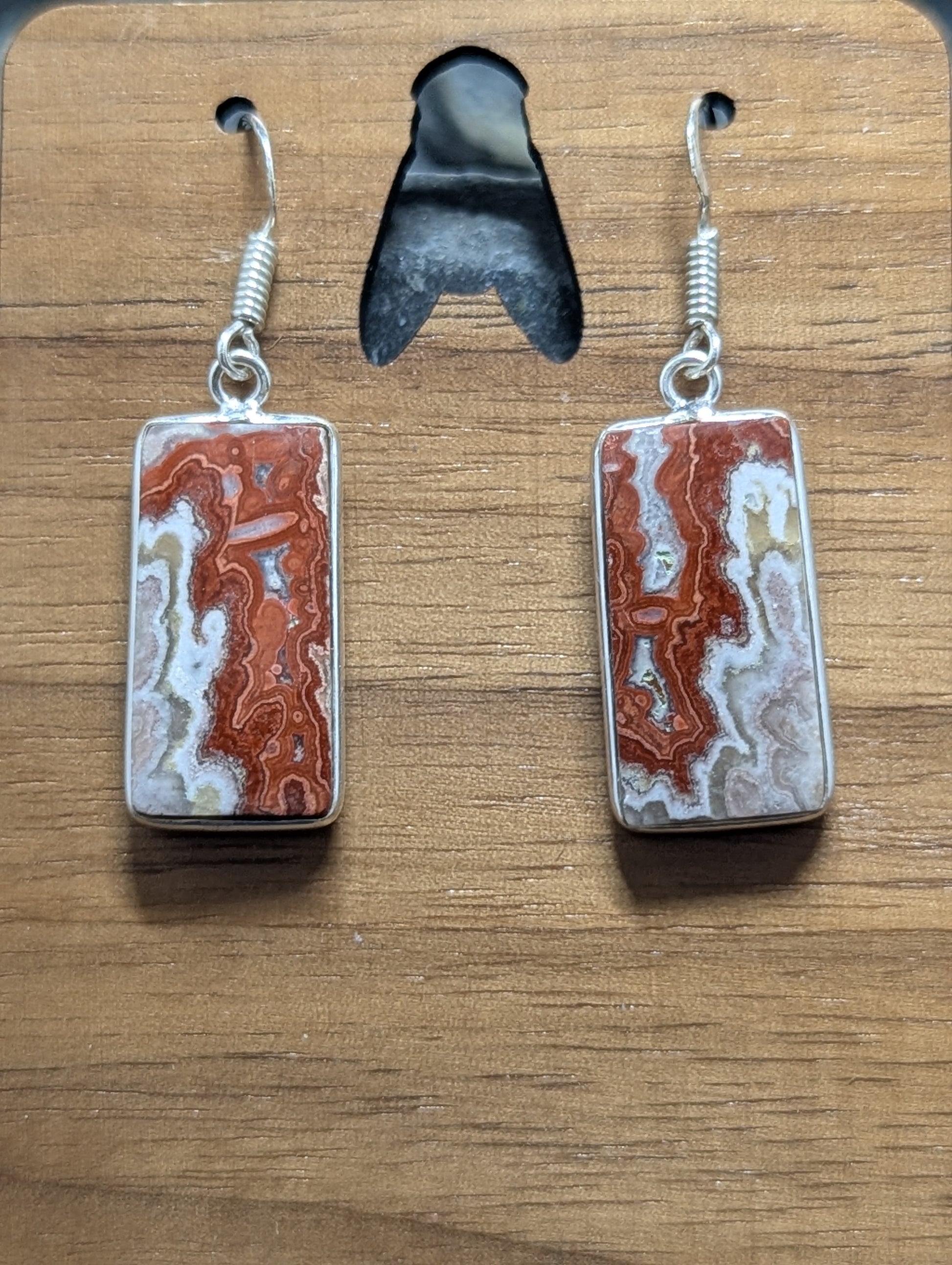 Mexican Laguna Lace earrings hand cut and polished. Set in .925 Silver.