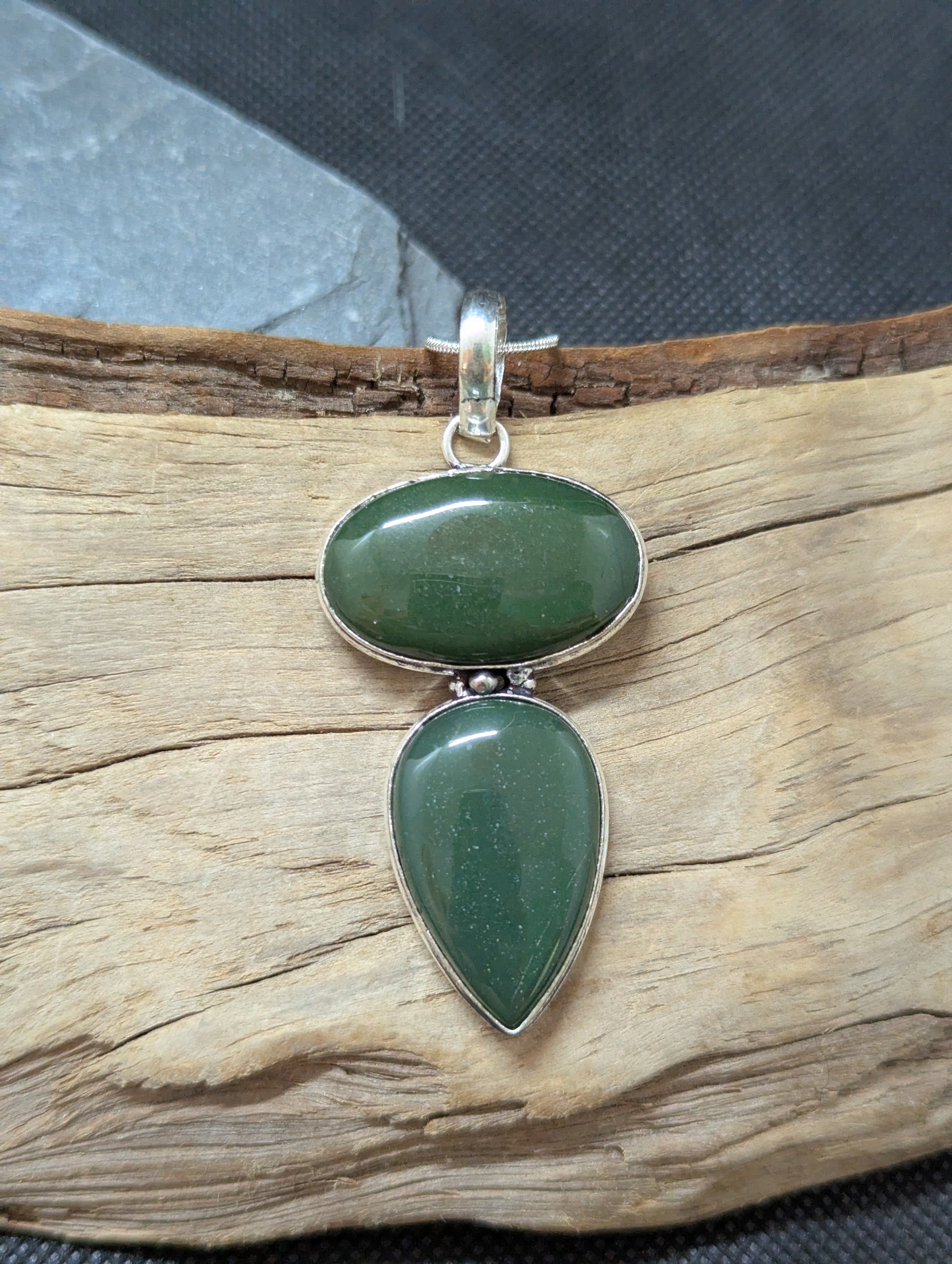Nephrite Jade hand cut and polished. Set in .925 Silver.