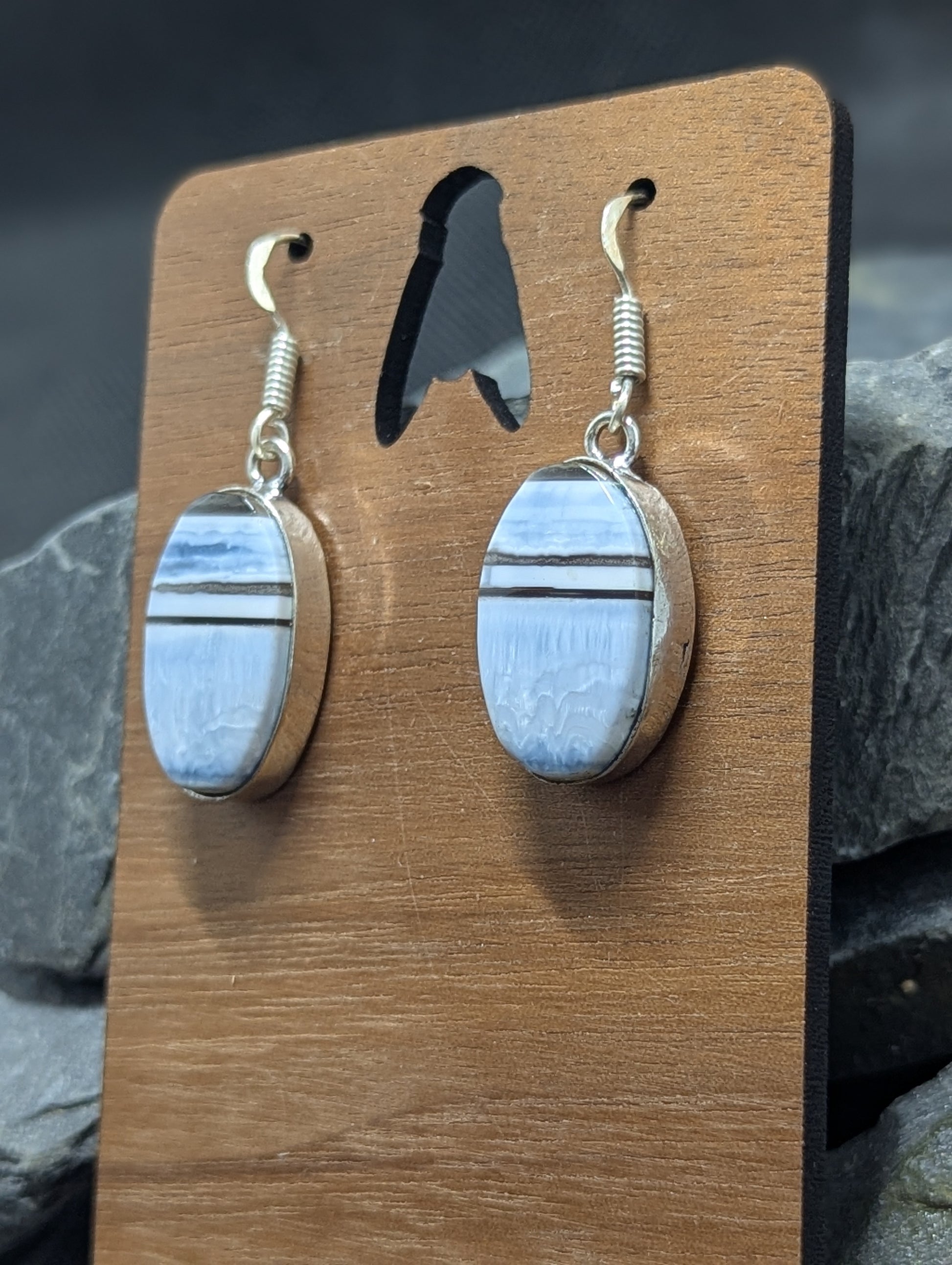 Owyhee Opal earrings hand cut and polished. Set in .925 Silver.