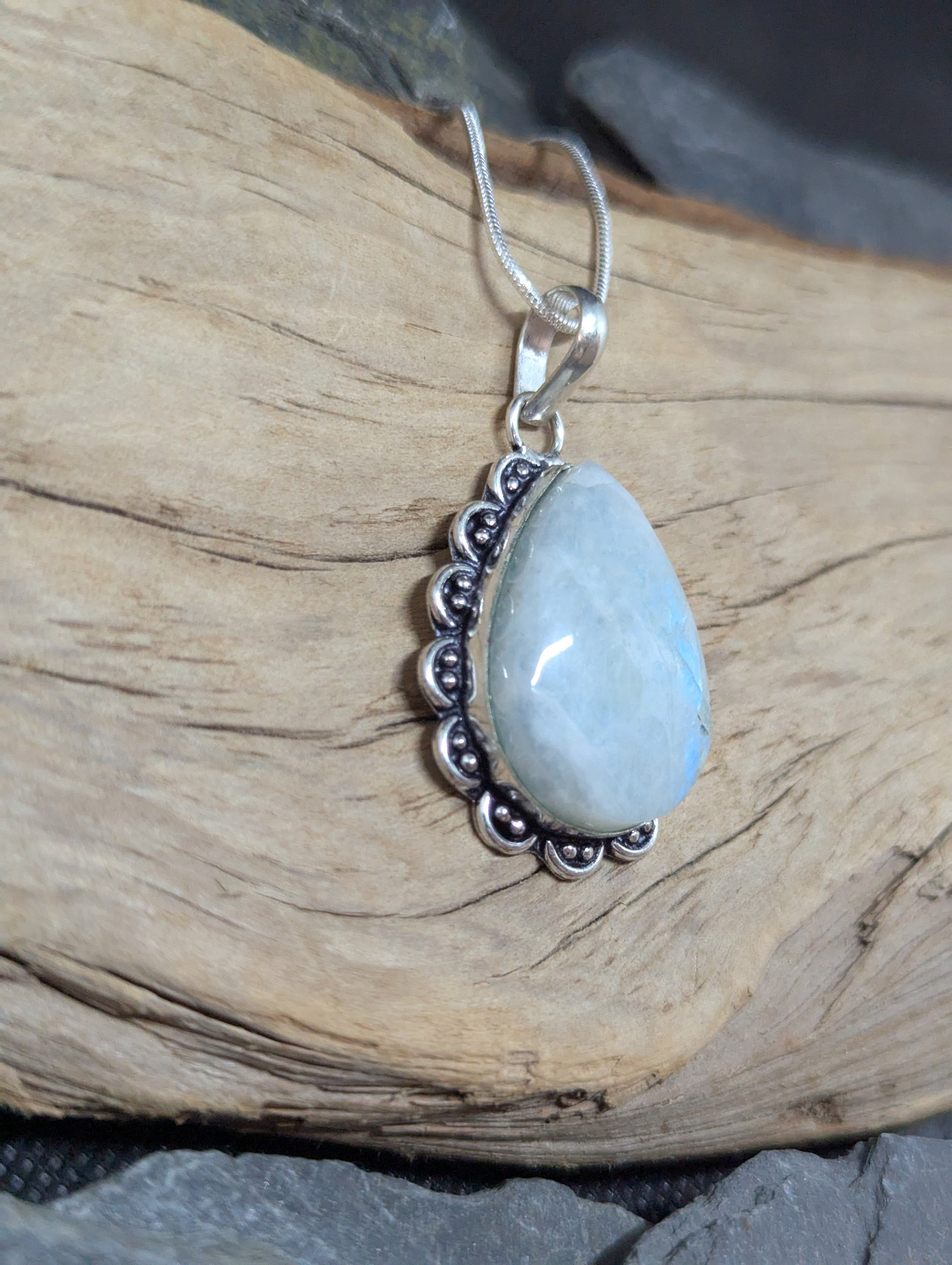 Rainbow Moonstone hand cut and polished. Set in .925 Silver.